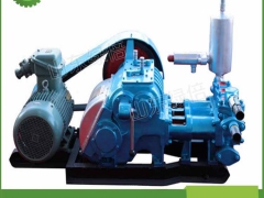 BW-250型(注浆泵)泥浆泵为卧式三缸往复单作用活塞泵,该泵具有两种缸径和四档变量。大缸套用于1000米大口径钻机配套,小缸套用于1500米小口径钻机配套。主要用于岩芯钻机配套输送泥浆,也可用于其它方面的注浆,矿井排污及远距离送水等其他用途。本泵耗能少,操作灵活,优质耐用,分解性好,易于搬迁。