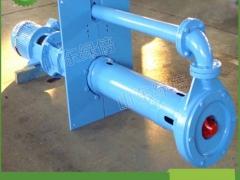 立式渣浆泵为单级,单吸悬臂式结构,用轴承座,支承座,联接管连接泵的水力部件,液体由出液管部件排出,泵的叶轮为半开式叶轮,在叶轮叶片进口延伸处设有搅拌叶片,该泵主要特点是在液下部位的泵轴,有足够的刚度,叶轮,泵壳之间不设轴承,不采用轴封,可以输送含有较大浓度固定颗粒的介质。泵插入液下的长度 800-2000之间,如果需要可以配带吸入管。轴封采用较大泵插入液体中运行,不设轴封,传动由立式电动机安装在电机支承和支承座上,用联轴器与泵相连。泵通过弹性联轴器与电动机连接,从原动机方向看泵为顺时针方向旋转。